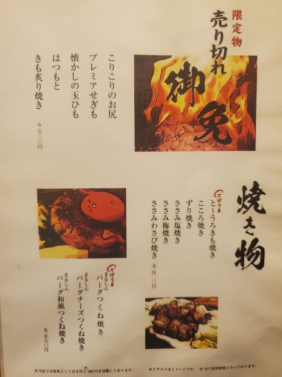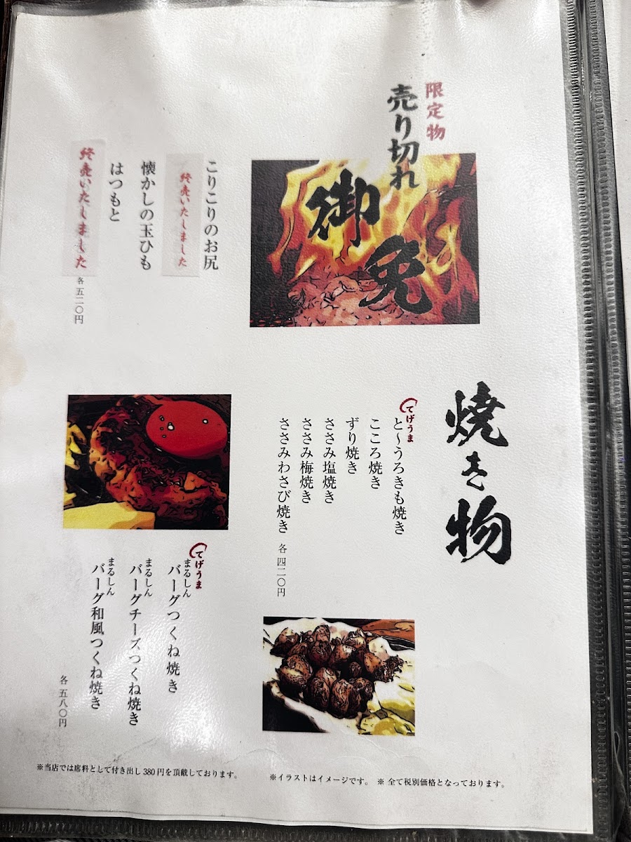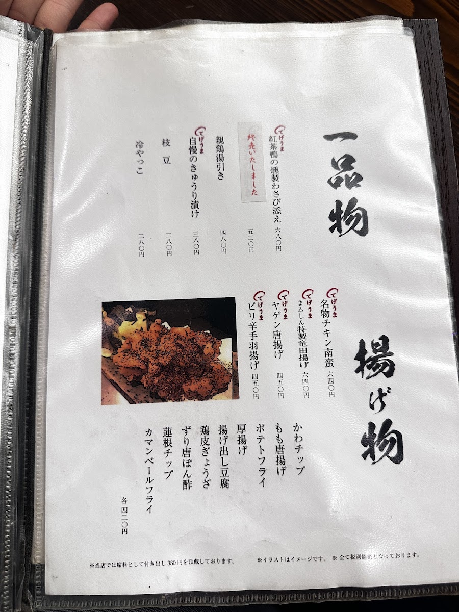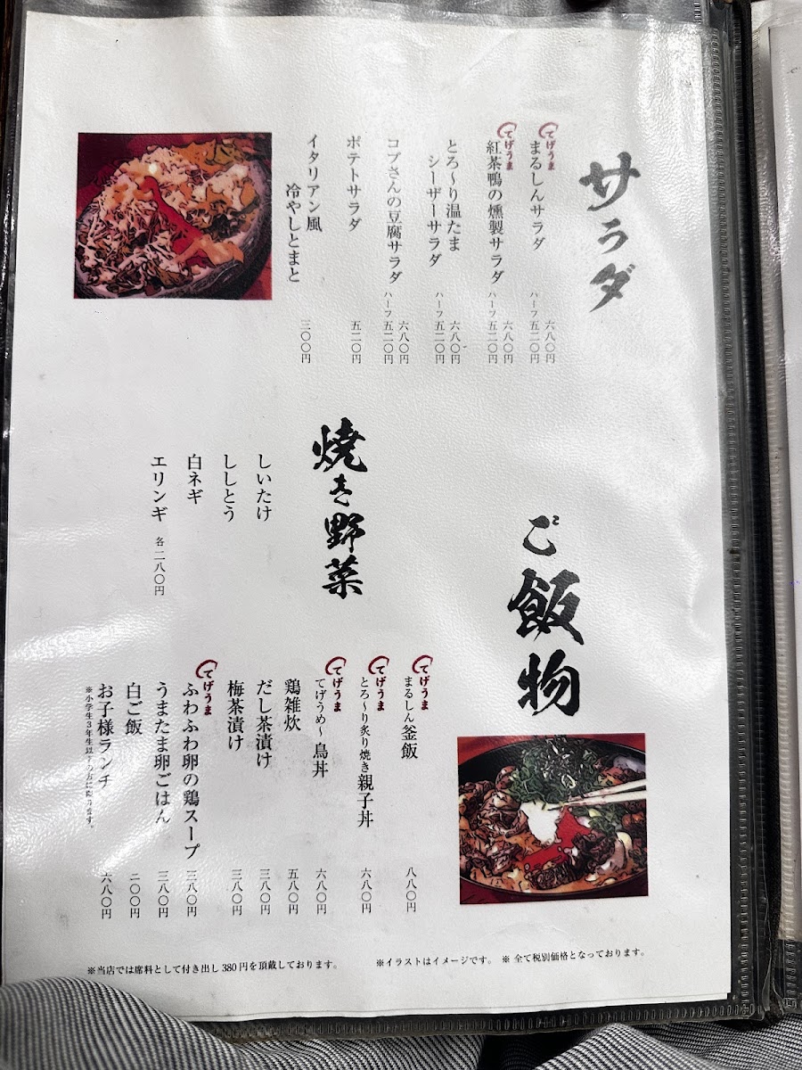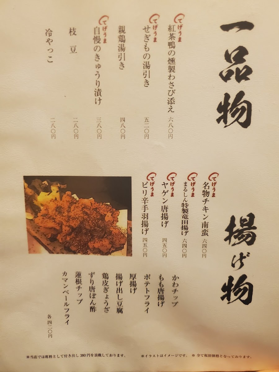 Marushin Jr-Nara offers a diverse and flavorful menu that perfectly showcases the essence of Japanese grilled chicken. The standout dish, なんこつ, features tender, savory chicken cartilage, offering a satisfying crunch with every bite. Another must-try is the かた い親鶏のもも焼き, where the rich, juicy thigh meat of a mature chicken is expertly grilled to perfection. For those who appreciate the bold flavors of charcoal grilling, the もも炭火焼き and 炭焼き dishes are a great choice, highlighting the smokiness and depth of flavor from the traditional method of cooking over an open flame. The ささみ梅焼き offers a refreshing twist, with lean chicken breast grilled and paired with a delicate hint of ume plum, creating a unique balance of flavors. For a comforting experience, the ふわふわ卵の鶏スープ stands out with its light, fluffy egg texture, providing a warm and soothing broth that complements the grilled offerings. The menu also includes delightful combinations such as やげん軟骨と合鴨, where tender chicken cartilage meets the rich, flavorful taste of duck, and crispy 唐揚げ, fried to golden perfection. With its array of delicious and varied options, Marushin Jr-Nara delivers an exceptional dining experience for those looking to savor traditional Japanese yakitori and comforting side dishes.